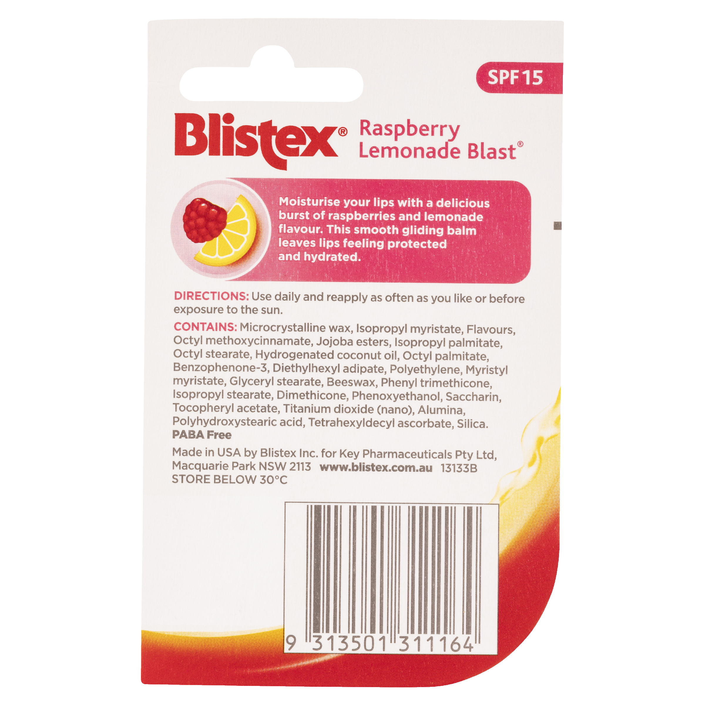 - Moisturises lips with luscious raspberries and lemonade